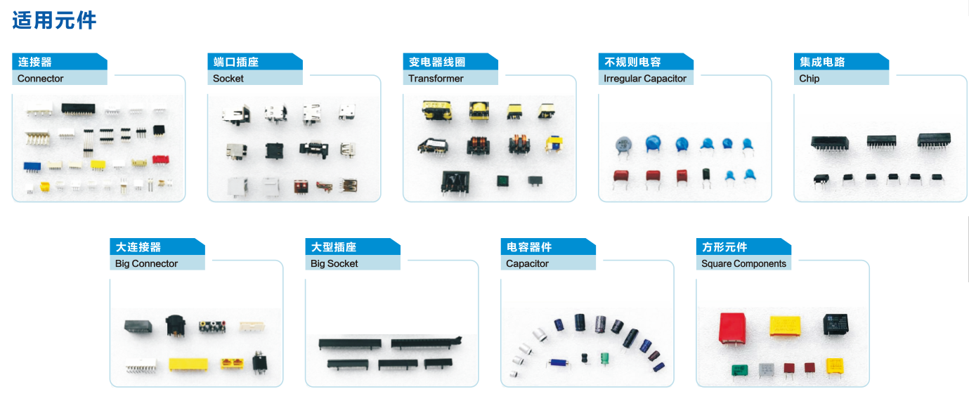等整條SMT生產(chǎn)線設(shè)備,以及SMT零配件、SMT配套材料、服務和解決方案。